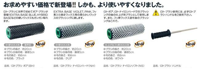 GALLIUM □商品詳細 ■MODEL:ロトブラシ ナイロンハード ■小売希望価格:6,000 + (税) -------------------------------- ●ブラシの長さ/約20cm ●ブラシ台座の径/直径5cm ●毛の長さ/約6mm ●毛の色/クリア -------------------------------- ピンク、バイオレット、フッ素入り滑走ワックス等の柔らかいワックスのブラッシングに適します。