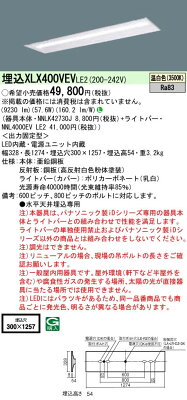 ◎【当店おすすめ!iDシリーズ】 Panasonic 施設照明一体型LEDベースライト 40形 埋込型 W300下面開放型 Hf蛍光灯32形高出力型3灯器具相当一般タイプ 10000lmタイプ 温白色 非調光XLX400VEVLE2